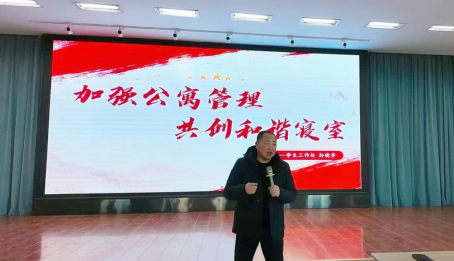 为强化学生公寓管理,构建网格化体系,2025年12月12日,由学生工作处副处长孙晓芳在“一站式”学生社区活动室2508开展以“强化责任担当,提升服务效能”为主题的学生公寓社区干部培训会,培训会面向社区干部及寝室长分层推进。培训采用“三级联动”模式:公寓辅导员—社区干部—寝室长,打通管理“最后一公里”,推动社区从生活空间向育人阵地转型。